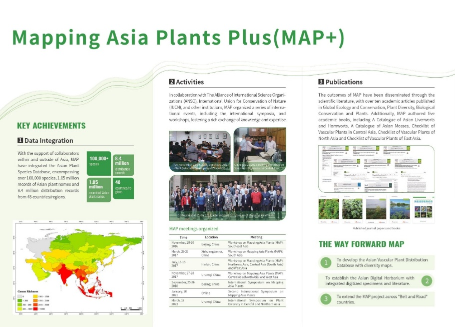中国科学院植物研究所牵头,联合中国科学院新疆生态与地理研究所、东北林业大学、乌兹别克斯坦科学院植物研究所、俄罗斯科学院水与生态问题研究所等多家国内外科研单位,以亚洲为起点,分东南亚、南亚、东北亚等6个亚区开展工作,建立了亚洲48个国家/地区的植物物种名录及分布数据库,涵盖10万余种植物、105万条名称记录与840万条分布记录。研究团队已基于上述基础发表14篇文章、出版4本亚洲植物物种编目专著,系统呈现了研究成果。在国际合作方面,组织召开了8次亚洲区域植物多样性国际研讨会,与4个国际机构组织的代表共同签署了谅解备忘录(MOU),承诺各方将围绕植物多样性保护与数据共享,开展合作交流。这一工作为推动亚洲及“一带一路”国家植物多样性的科学研究和有效保护奠定了坚实的基础。