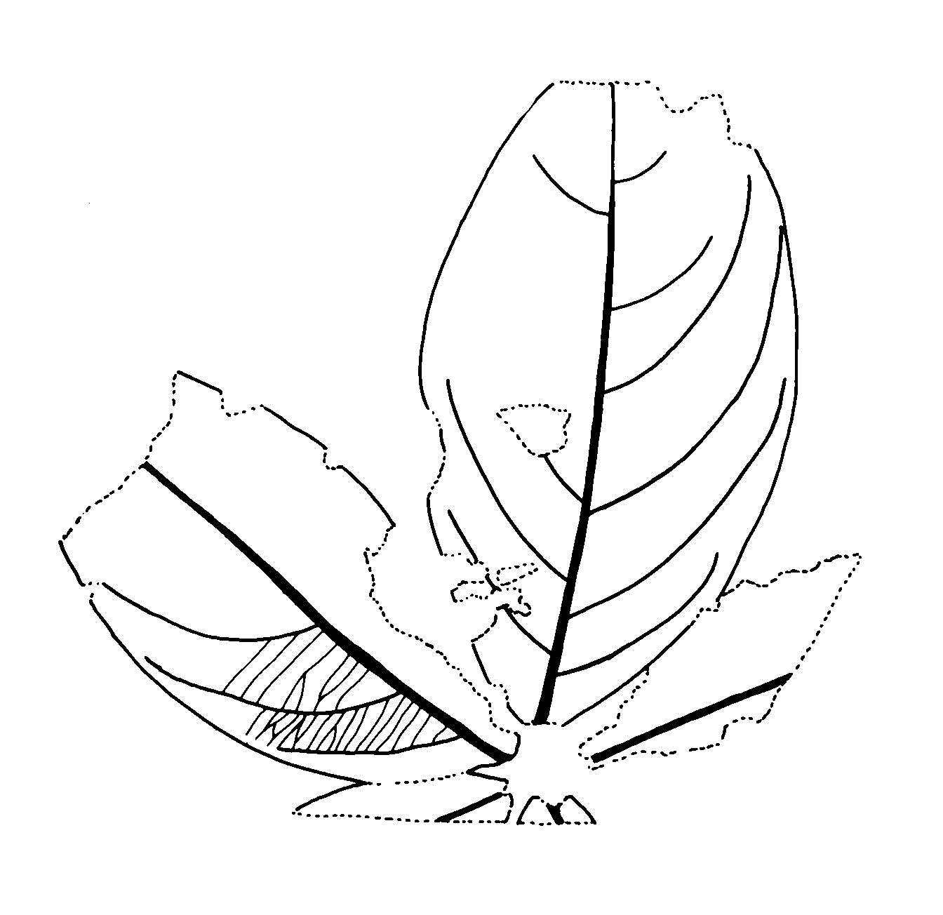 Leaf: palmately compound consisting of five leaflets; leaflets symmetrical, elliptic; apex unknown; base acute; margin entire; venation pinnate camptodromous; primary vein moderate, straight; secondary veins arising at an acute angle 35-65° becoming greater towards the apex, uniformly curved for most of their length before becoming more abruptly curved near the margin and joining the superadjacent secondary at angles ranging from acute to obtuse; tertiary veins indistinct but simple or branched once, percurrent, straight, joining the admedial sides of the secondaries at an acute angle and the abmedial sides at an obtuse angle forming a more or less constant angle to the midvein of approximately 100°.