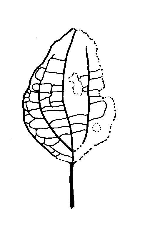 The secondary and tertiary veins of this leaf are very difficult to differentiate on the basis of strength, and the classification adopted here is based on course in comparison with other venation patterns.
