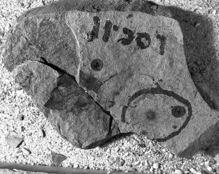 Matrix is a poorly bedded yellow-gray micaceous siltstone.
