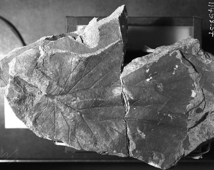 This leaf clearly shows hamamelid characters and is a good example of members of the 'platanoid' complex. While no leaves of this type have been reported from the Dakota Group, the general form is common in Hollick's (1930) specimens from along the Yukon River under the genus name Crednaria. A distinguishing character of this genus is the truncate to shallowly lobate base in contrast to the attenuate or peltate forms ascribed to 'Platanus' or Pseudoprotophyllum. The apparent asymmetry is also common in Crednaria. Of Hollick's species, the one that agrees most closely with the above description is Crednaria inordinata (Hollick, 1930, p. 86; Plate 56, Fig. 3; Plate 57, Figs. 2, 3) and because of its large size could be referred to the variety maxima (Hollick, 1930, p. 86; Plate 58, Figs. 1, 2).