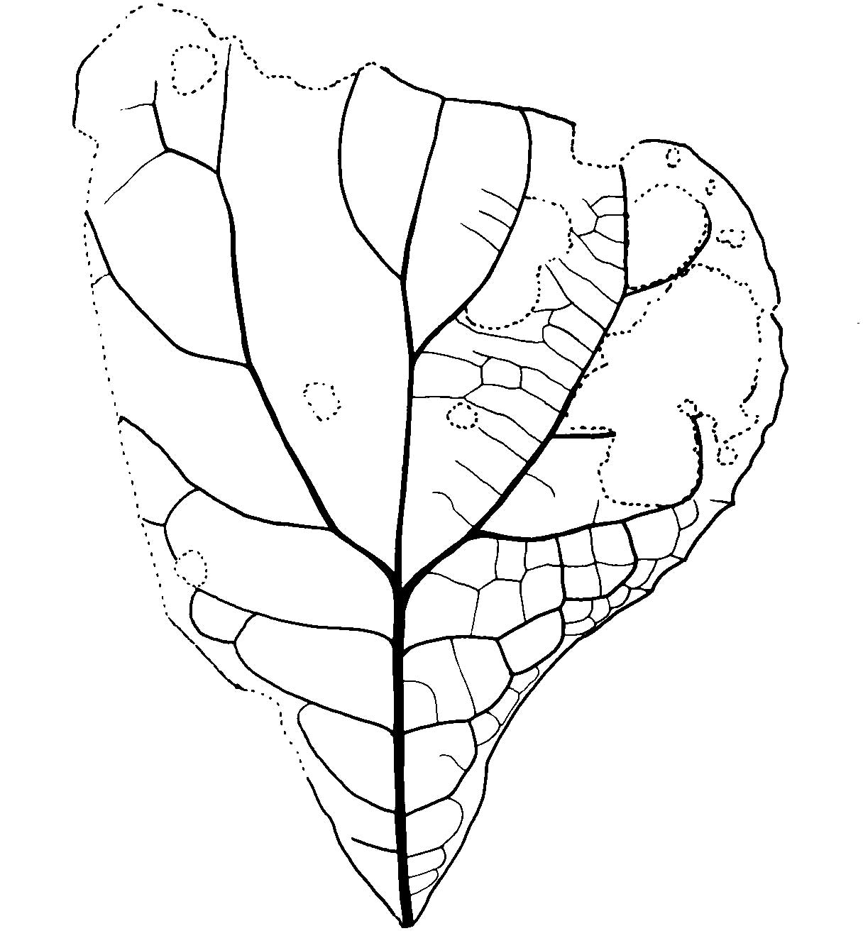 Leaf: simple; symmetrical; very wide obovate, trilobed; apex missing (?); base acute; margin serrate except in the basal quarter of the leaf where it is entire; teeth small (< 1 mm) with obtuse angular apices and wide shallow rounded sinuses, apices showing evidence of a swollen tip; venation suprabasal perfect marginal actinodromous; primary midvein moderate, more or less straight for two-thirds of the lamina length, becoming sinuous or zigzag near the apex, changing direction at the point of departure of the superior secondary veins; pectinal veins arising at an angle of 45-55°, moderate, slightly weaker than the primary at their point of departure which is approximately one-third of the length of the lamina above their base, recurved immediately after departure from the midvein then curved more or less uniformly for most of their length, the degree of curvature becoming greater near the apex so that the pectinals curve inwards towards the apex, moderate pectinal abmedials given off at angles of approximately 45°, curved, the degree of curvature increasing near the margin and joining the superadjacent abmedial at approximately 90°, third and fourth order arches also present; the superior secondaries given off at an angle of 45° and curved like the pectinals; inferior secondaries, approximately six pairs, also arising at 45° but immediately recurving so that the main course of the vein is at 90° to the midvein before curving near the margin to form arches by joining the superadjacent inferior secondary at approximately 90°; third and fourth order arches also present; tertiary veins percurrent, straight or convex, often forked, joining both ad- and abmedial sides of the lower order veins at approximately 90°; fourth order veins indistinct.