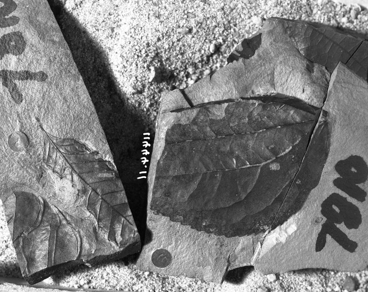 A variable feature is the shape of the base at the junction of the petiole which is best demonstrated by comparing specimens USGS 11600.27 and USGS 11600.34. There can be little doubt, however, that these specimens represent the same species. They possess the same crenate to crenulate margin and fundamentally the same venation. There are small differences between specimens but these are all within the range of variation that might be expected within such ancient leaf forms. The similar extant genus Cercidiphyllum Siebold and Zuccarini also exhibits a large degree of variation in leaf form and architecture. Specimen UIDAHO 3/18, 19, 26.2 (Dicot 91) is included in this form because in all respects, except the strength of the tertiaries bridging the pectinals and midvein, it is within the range of variation seen in the specimens from the Tolstoi Formation.