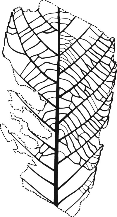Leaf: simple; symmetrical; oblanceolate or narrow obovate; apex obtuse; base missing; margin serrate, teeth apices obtuse to rounded, both apical and basal sides convex, sinuses angular acute, teeth more or less regular in size, shape, and spacing; venation pinnate, mixed craspedodromous, primary midvein moderate to stout, more or less straight; secondary veins arising at an angle of 60-70° without any noticeable change in angle along the length of the lamina, moderate gently uniformly curved, degree of curvature becoming more pronounced near the apical margin and joining the superadjacent secondary or a branch of it at an acute angle, branches of third order thickness given off from the secondary loop close to the margin and running to the apices of the teeth; tertiary veins percurrent, often forked, convex between primary and secondary veins but otherwise more or less straight, convex or sinuous, joining both ad- and abmedial sides of the secondary veins at an angle of 90° in the more basal parts of the lamina, becoming arranged almost perpendicular to the midvein and forming an acute angle with the abmedial side and an obtuse angle with the admedial side of the secondary in the more apical quarter of the lamina; fourth order veins percurrent, arranged at approximately 90° to the tertiaries and more or less straight or percurrent.