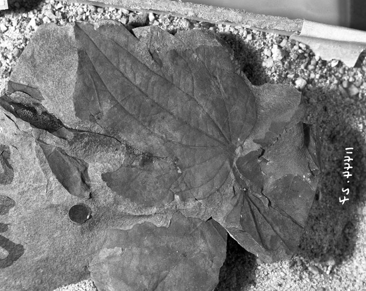 A variable feature is the shape of the base at the junction of the petiole which is best demonstrated by comparing specimens USGS 11600.27 and USGS 11600.34.  There can be little doubt, however, that these specimens represent the same species.  They possess the same crenate to crenulate margin and fundamentally the same venation.  There are small differences between specimens but these are all within the range of variation that might be expected within such ancient leaf forms.  The similar extant genus Cercidiphyllum Siebold and Zuccarini also exhibits a large degree of variation in leaf form and architecture.  Specimen UIDAHO 3/18, 19, 26.2 (Dicot 91) is included in this form because in all respects, except the strength of the tertiaries bridging the pectinals and midvein, it is within the range of variation seen in the specimens from the Tolstoi Formation.