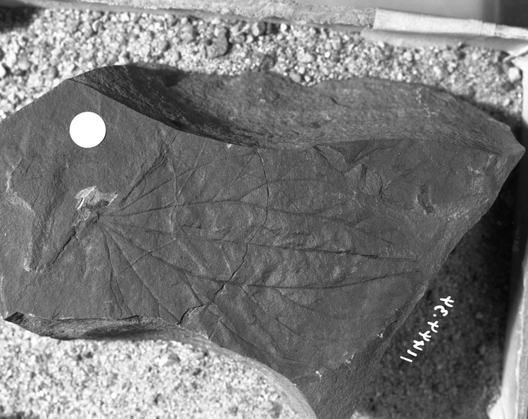 A variable feature is the shape of the base at the junction of the petiole which is best demonstrated by comparing specimens USGS 11600.27 and this specimen. There can be little doubt, however, that these specimens represent the same species. They possess the same crenate to crenulate margin and fundamentally the same venation. There are small differences between specimens but these are all within the range of variation that might be expected within such ancient leaf forms. The similar extant genus Cercidiphyllum Siebold and Zuccarini also exhibits a large degree of variation in leaf form and architecture. Specimen UIDAHO 3/18, 19, 26.2 (Dicot 91) is included in this form because in all respects, except the strength of the tertiaries bridging the pectinals and midvein, it is within the range of variation seen in the specimens from the Tolstoi Formation.