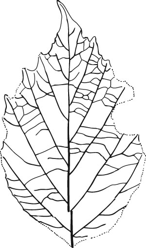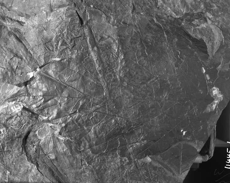 The venation of this leaf has very pinnate appearance although it is fundamentally actinodromous. The tertiary venation displays a degree of disorganization unusual in leaves from the uppermost Cretaceous or lowermost Tertiary. The course and degree of branching is very variable and, although fundamentally transverse, some areas develop into almost a random reticulum. Also of special interest is the difference in tooth size and shape between the basal and apical halves of the lamina.