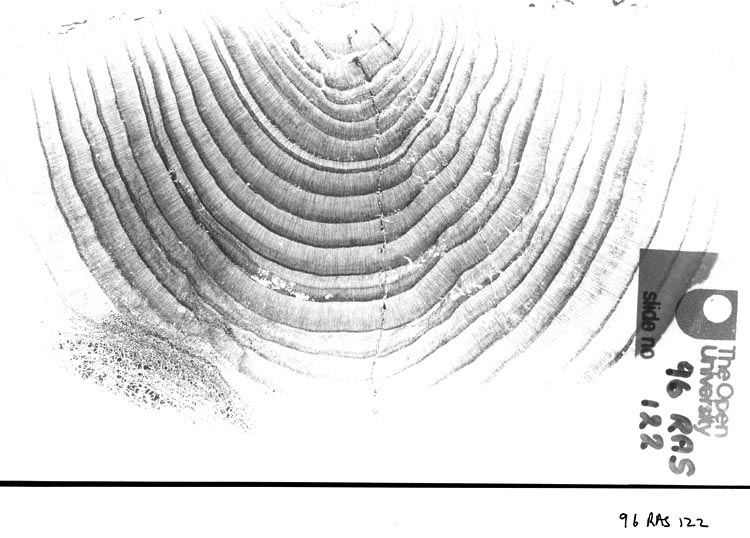 Transverse section of wood that lacks vessels. Sample taken from a fallen log.