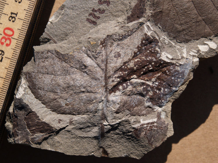 Comparison. The new species differs from Tiliaephyllum tsagajanicum from the Upper Tsagayan Flora of the Amur Region (Krassilov, 1976) by the pattern of secondary venation in the lower part of the leaf. The third (from the bottom) pair of secondary veins is longest and most branched in T. brooksense sp. nov. Unlike this species, T. tsagajanicum has the longest lower pair of secondary veins departing immediately from the leaf base."