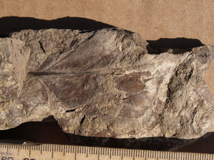 Description (Figs. 4a, 4b). The leaves are medium-sized, about 8–9 cm long and 4-4.5 cm wide, simple, entire-margined, elliptical or ovate. The maximum width is situated at the middle of the leaf lamina. The length/width ratio is about 2 : 1. The leaf base is narrowly or broadly cuneate and decurrent. The leaf apex is missing. The leaf margin is finely crenate, and at the base it is entire. The teeth are very small, about 0.5 mm long, rounded, slightly asymmetric, directed towards the leaf apex, without glands. The notches between the teeth are acute.