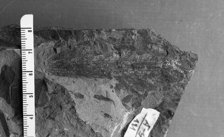 Venation parallelodromous acrodromous. In axial part there are three thick primary veins separated from each other by narrow intervals of 1.0–1.5 mm. 8– 11 pairs of arcuate secondary lateral veins branch from the leaf base, which run parallel to the leaf margins, do not dichotomize, and converge near the apex. Intervals between neighboring secondary veins regularly change increasing first from leaf base to the maximum in the middle and then decreasing again toward the apex. Relative to the central primary veins, the distance between secondary veins is also increasing first up to 6–8 mm and then decreasing closer to the leaf margin so that the most distant vein is almost at the margin. Thin tertiary veins correspond to scalariform anastomoses that are com paratively frequent (15–27 veinlets per 1 cm of the leaf length) and nearly perpendicular to secondary veins (relative angles of 75° to 90°). Between the middle veins anastomoses are less frequent (7–8 veinlets per 1 cm) and alternately arranged at the angle of 45°–50° relative to the central primary vein. Toward the periphery, the deviation angle of tertiary veins gradually grows up to 90°. Between tertiary veins are fine undulating veinlets of the fourth order forming two series of ortho and pentagonal areolae 0.5–0.7 mm across."