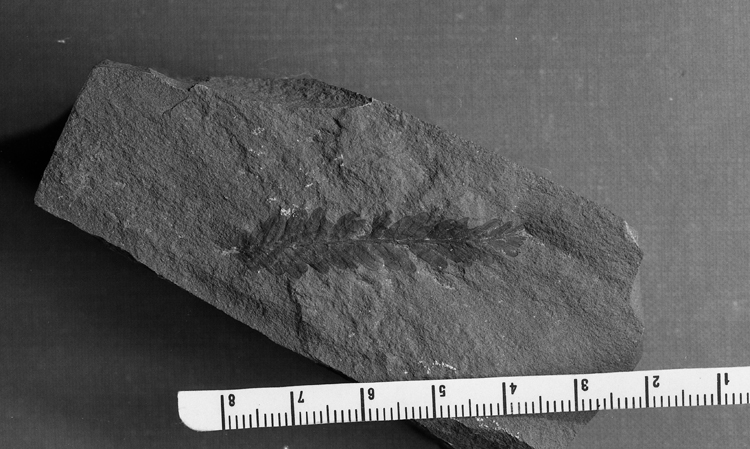 "Leafy shoots commonly with axis diameter as thick as 1.0–1.5 mm and opposite arrangement of vegetative branchlets; there are long perennial and shorter deciduous annual shoots. In short shoots, linear distichous opposite leaves with distinct midribs are 3–4 to 15–17 mm long and 1.5–2.5 mm wide. Somewhat widened leaf base narrows abruptly and grades into short petiole producing oblique to subparallel decurrent scars of the petiole attachment. The leaf apex usually obtuse-rounded is sometimes acuminate, bearing terminal spinule. Short shoots are so thickly leaved that leaves come in contact with each other. Orientation angles of leaves relative to the shoot axis change from 45° to 80°–90°.