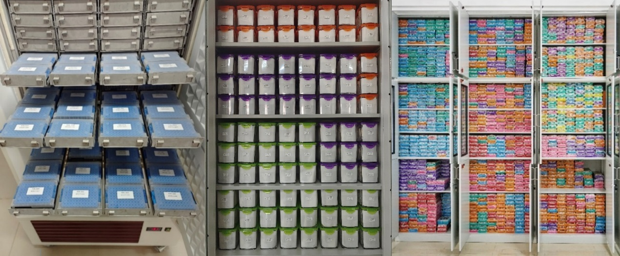 国家植物标本资源库基于主体库(PE)标本材料,建立了“中国植物DNA库”,全面覆盖高等植物各大类群和关键进化节点,为构建中国植物物种“生命之树”和植物物种精准鉴定与产地溯源储备了丰富的材料资源。2022年,标本资源库在“精准采集项目”的支持下更新了大量植物材料的遗传资源储备。DNA库总量已增加至611科6599属4.6万余种28.6万份。与DNA库配套的“植物DNA条形码参考序列数据库”存储DNA序列超过500万条,数据库覆盖物种超10万种,中国分布的物种约2.89万种。已涵盖《国家重点保护野生植物名录》中91%以上的科属,目录中95%的物种可准确鉴定到种/属的等级。