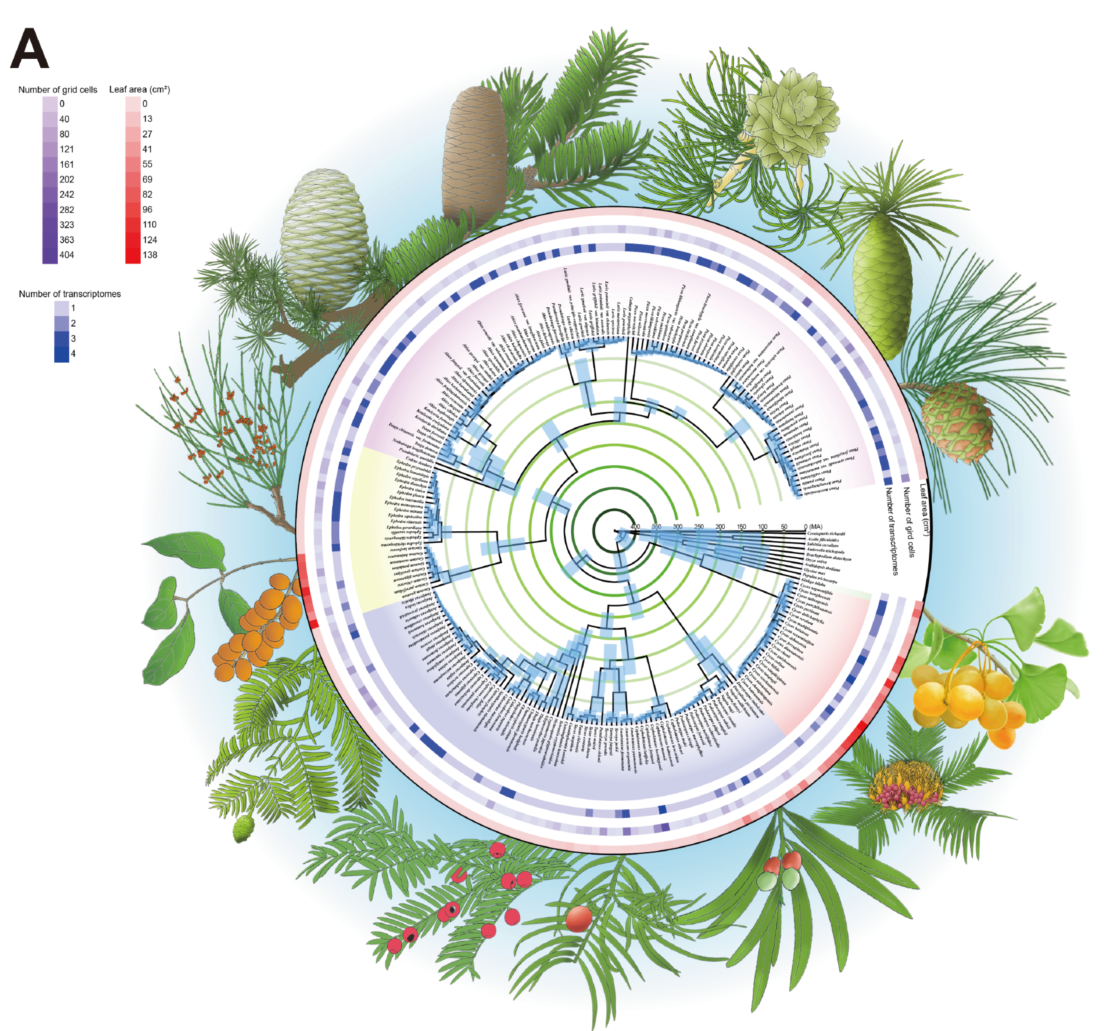 近日,中国科学院植物研究所汪小全研究团队构建了迄今为止覆盖最广、分辨率最高的中国裸子植物生命之树。研究基于1206个直系同源基因,并整合物种分布、功能性状和分化时间等数据,从物种多样性、系统发育多样性和功能多样性三个维度全面解析了中国裸子植物的空间格局。