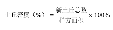 种群数量可采用土丘密度法进行鼠密度测定。土丘密度法指通过计算新土丘密度指示鼢鼠类地下啮齿动物种群相对密度的方法。
